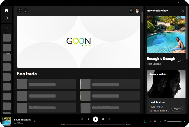 Descrição: Os “Spotify Overlay Desktop ads” podem se referir a anúncios de sobreposição exibidos na interface do aplicativo de desktop do Spotify enquanto os usuários estão usando o serviço de streaming de música. Esses anúncios de sobreposição podem assumir várias formas, como banners, pop-ups ou outros elementos visuais que aparecem sobre o conteúdo do aplicativo.