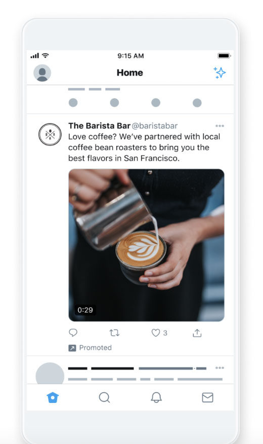 Principais características dos anúncios de vídeo no Twitter Ads: